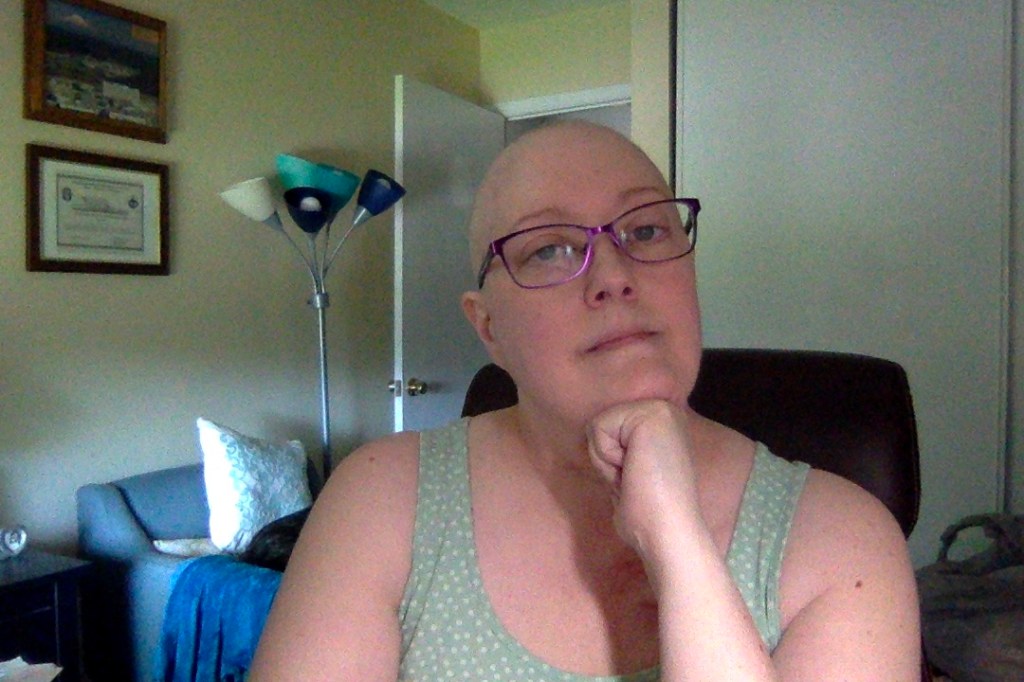 It was time. The hair coming out in the sink, the shower, the chairs, and on the floor was just too much. I tried to wait for a barber shop appointment, but Wednesday was just too far away. So I went out on the porch with my son and his trimmers and got a shave-down. I wasn’t even emotional. I was just ready for the hair to stop falling. The good news is that the chemo is working! I’ll have my curls (or spikes) back again some day.